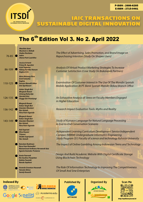 E-Certificate IAIC Transactions on Sustainable Digital Innovation (ITSDI) Vol.3 No.2 April 2022